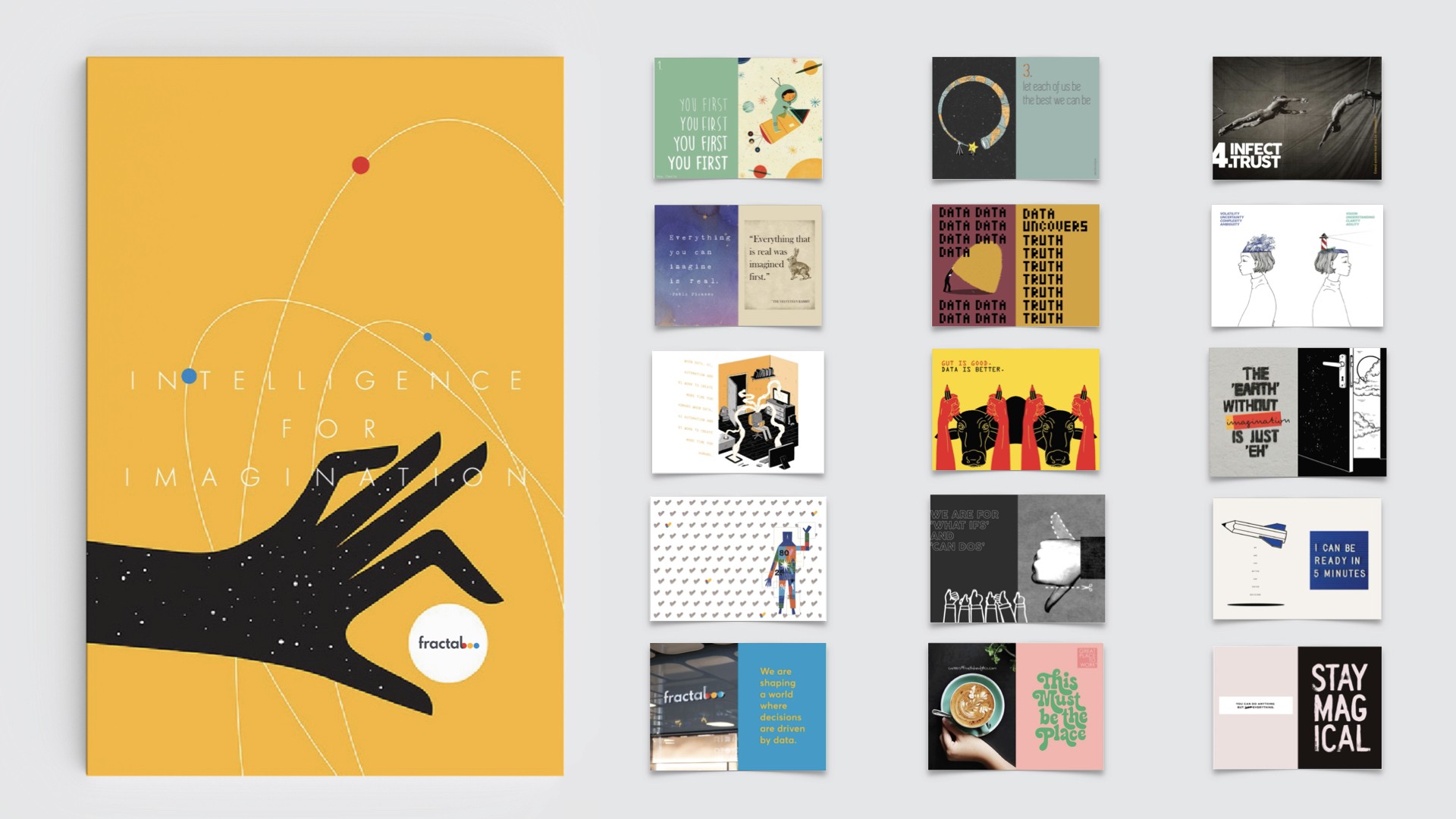 A playbook was crafted beautifully with illustrations and captivating text to communicate Fractal's core to its employees and clientele. Every page was designed to emphasize the company's belief: A free mind can fly.