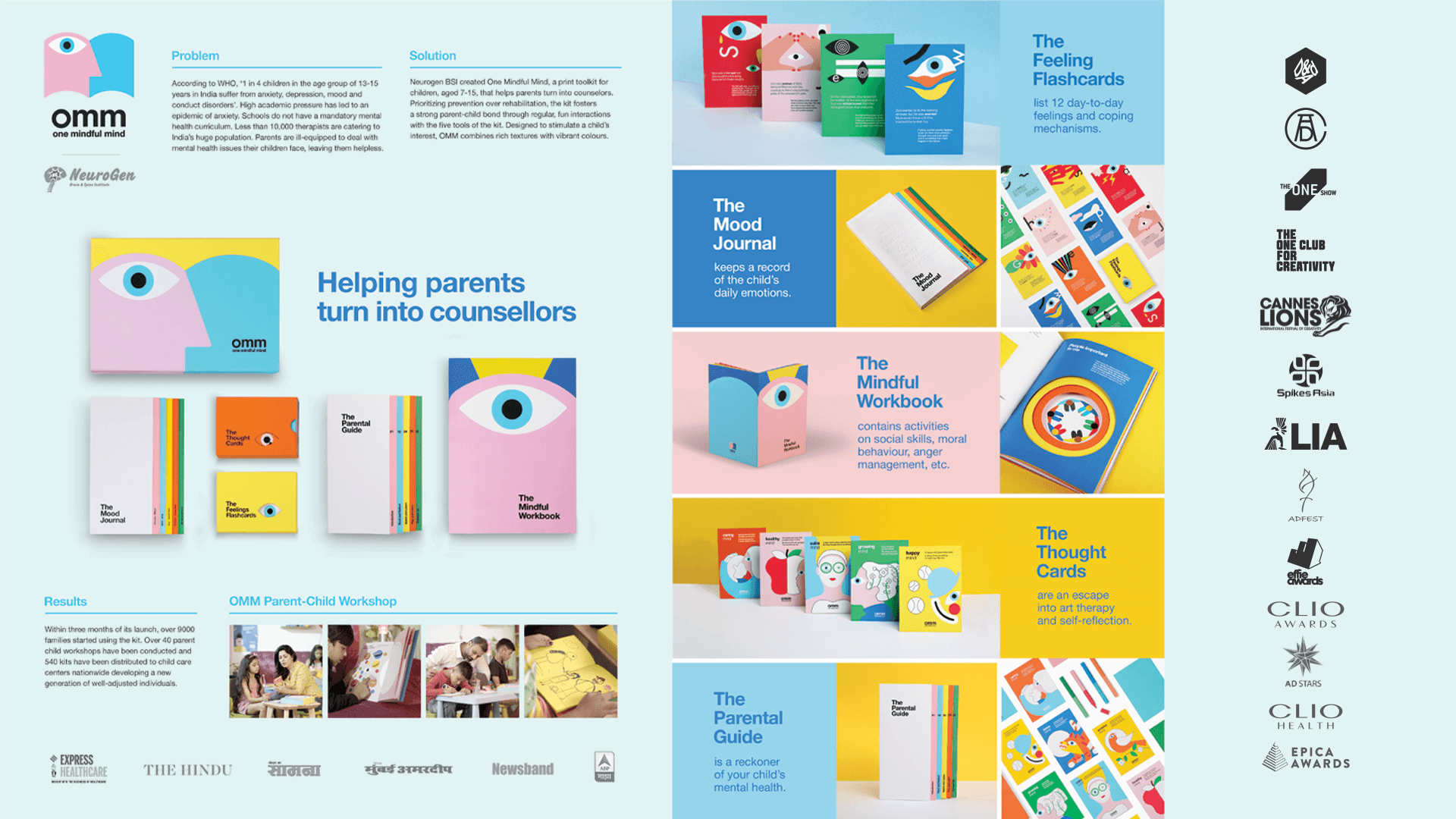 One Mindful Mind is an interactive print tool kit that fosters positive psychology among children, by helping parents turn into counsellors.