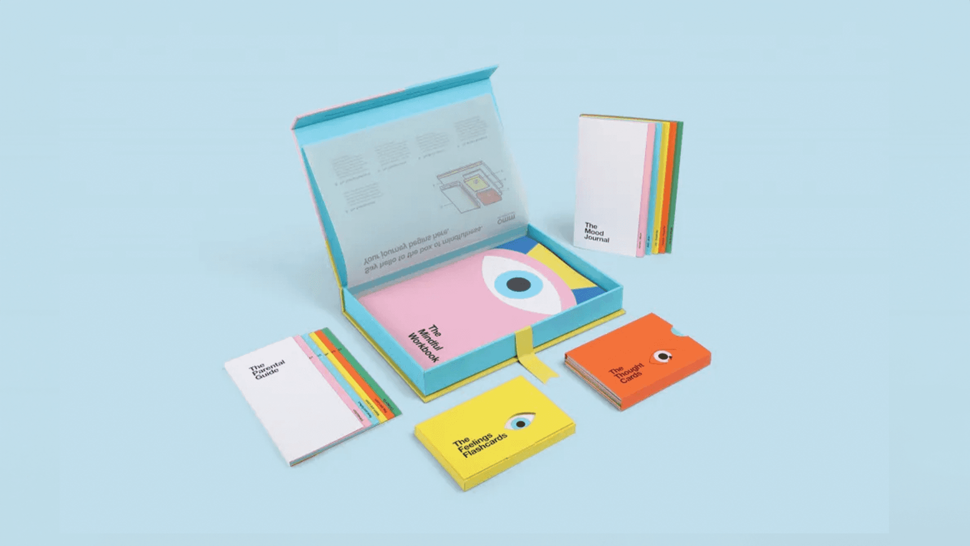The Feeling Flashcards - a set of 12 illustrative cards listing day-to-day feelings and coping mechanisms. The Mood Journal records child's daily thoughts, without the pressure of confrontation. The mood wheel tracks a child's feelings. The Mindful Workbook is a friendly tool for self-reflection, through interactive exercises. It covers topics on self-esteem, anger management, social skills and moral behaviour. The Thought Cards are an escape into art therapy and can be shared with loved ones. The Parental Guide is a handbook of external resources on mental health.